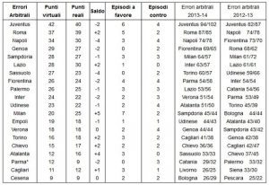 Classifica Serie A 2014-2015 senza errori arbitrali: la Roma ha due punti in più, la Juventus 2 in meno. Lo...