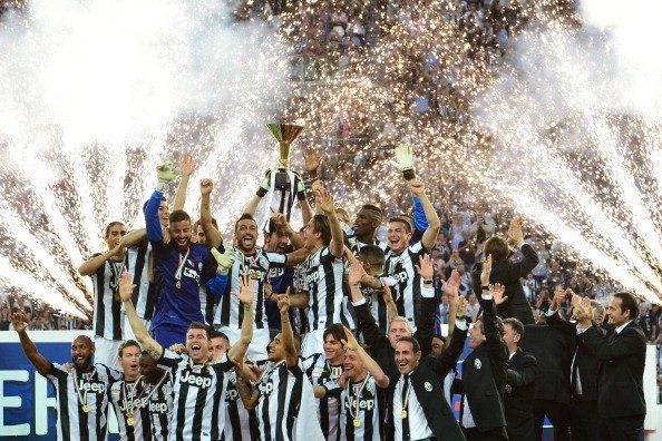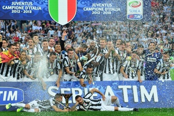 Gigi Buffon, capitano della Juventus, ha alzato la coppa consegnatagli dal presidente della Lega Calcio Maurizio Beretta: la Juve è Campione d’Italia 2012-2013. Si tratta del secondo tricolore consecutivo per i bianconeri, il 31° della storia della Vecchia Signora, il 6° per capitan Buffon. Il pareggio con il Cagliari, che impedirà alla Juve di battere il record di 91 punti di Fabio Capello, è ormai solo un dettaglio. Lo Juventus Stadium è un tripudio di tricolori e di coreografie che difficilmente dimenticheremo. Gustatevi tutte le foto della festa.\r\n\r\n