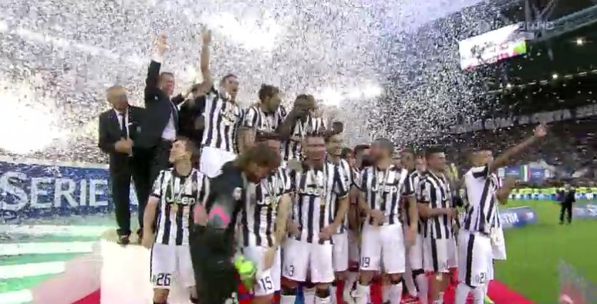 Juventus Campione d’Italia 2014-2015: la squadra di Allegri batte il Napoli 3-1 e al termine della gara parte la festa scudetto