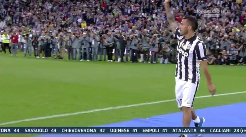 Juventus Campione d’Italia 2014-2015: la squadra di Allegri batte il Napoli 3-1 e al termine della gara parte la festa scudetto. Per la quarta volta consecutiva, la cerimonia di consegna della coppa dello scudetto si è tenuta allo Juventus Stadium. Ovazioni per tutti durante l’immancabile passerella, ma chiaramente per qualcuno ci sono stati più applausi di altri: è stato il caso di capitan Buffon, Tevez, Morata, Vidal e Pirlo. Grandi tributi anche per il tecnico Massimiliano Allegri e per Simone Padoin, per il quale è partito il coro: “Che ci frega di Ronaldo noi c’abbiamo Padoin”.