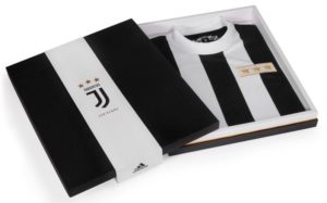 La maglia per i 120 anni della Juventus è acquistabile tramite lo store ufficiale online. La divisa celebrativa è ispirata alle divise degli anni 50 con 4 strisce verticali bianche e 3 nere. Nel colletto è presente un marchio con le date dell’anniversario che si rifà al primo simbolo del club. Sul petto le tre stelle racchiuse nel rettangolo bianco apparso per la prima volta nella stagione 1982-83 dopo la conquista del ventesimo scudetto.