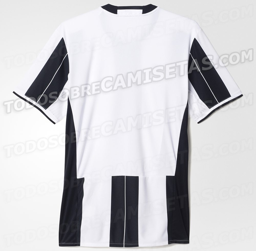 Maglie Juventus 2016-2017 (aggiornamento del 19 dicembre 2015). Il sito ‘footyheadlines’ ha pubblicato i leak della prima divisa Juve per la prossima stagione. Un cambio radicale rispetto alla maglietta in corso, poiché Adidas passa da una predominanza di bianco a quella del nero. Inoltre, le strisce bianche prevedono l’inserimento di sottili strisce nere al loro interno, una soluzione adottata già per la divisa del Milan nella stagione 2013-2014. Secondo l’autorevole sito, il retro della maglia, così come le maniche, sarà quasi interamente nero. Neri con inserti bianchi anche pantaloncini e calzettoni. Sorprende il fatto che le classiche strisce Adidas, pur spostate dalle spalle ai fianchi, non siano riuscite a produrre il passaggio alle maniche strisciate.